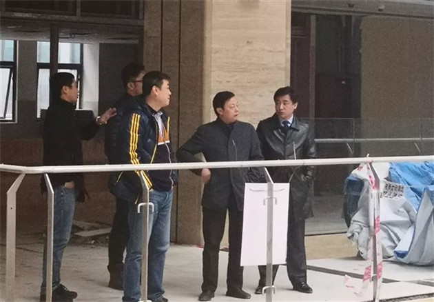2019年1月25日早上10點,院黨委書記文遠強、副院長葛慶到新蒲院區進行實地考察調研,項目辦主任梁軍及北京城建六公司項目經理董世光在現場接待并陪同。