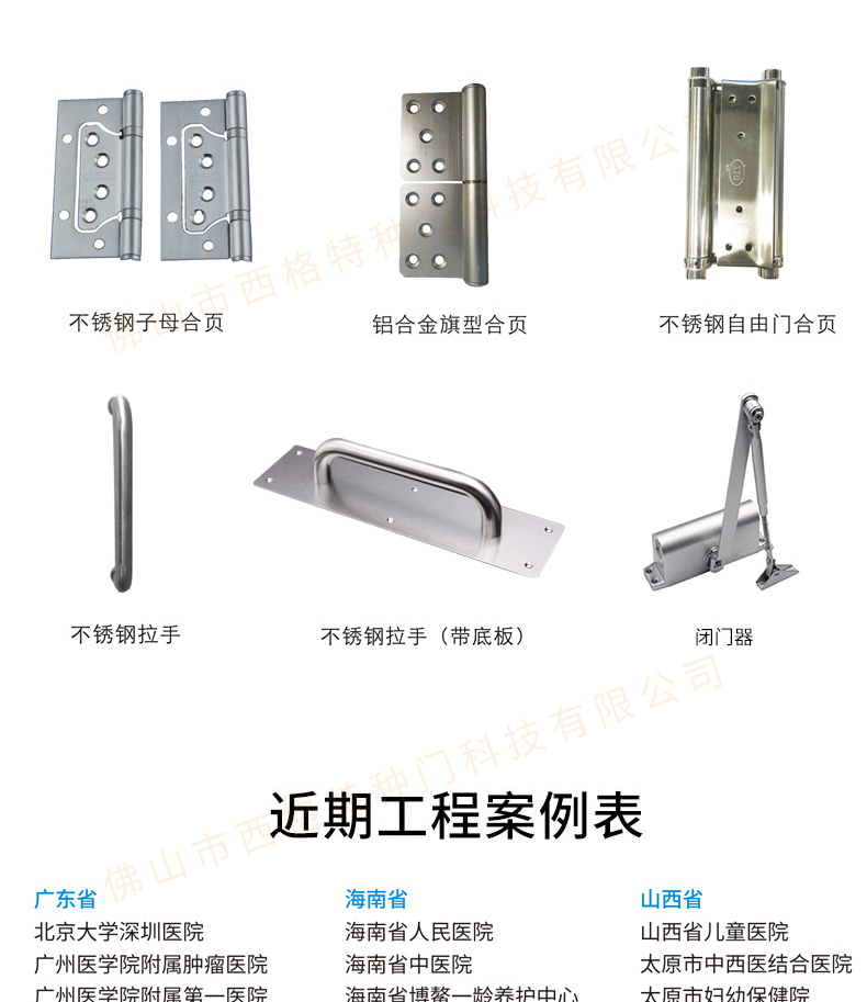 產(chǎn)品簡介:西格,多年來專注醫(yī)院門的生產(chǎn)與研發(fā),各種類、顏色的醫(yī)院門均可定制,歡迎咨詢。 產(chǎn)品價(jià)格:面議 咨詢熱線:400-6768-789